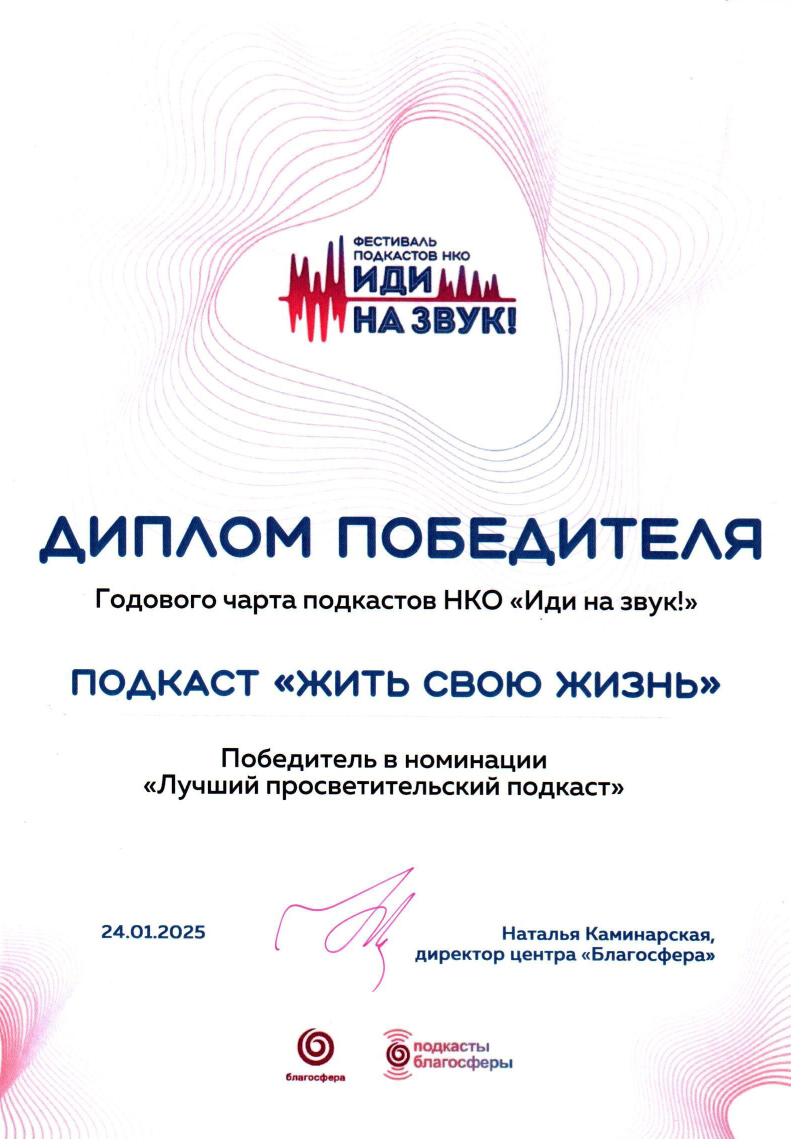 Подкаст фонда "Жить свою жизнь" стал победителем Фестиваля подкастов НКО "Иди на звук!" в премии "Лучший просветительский подкаст"
