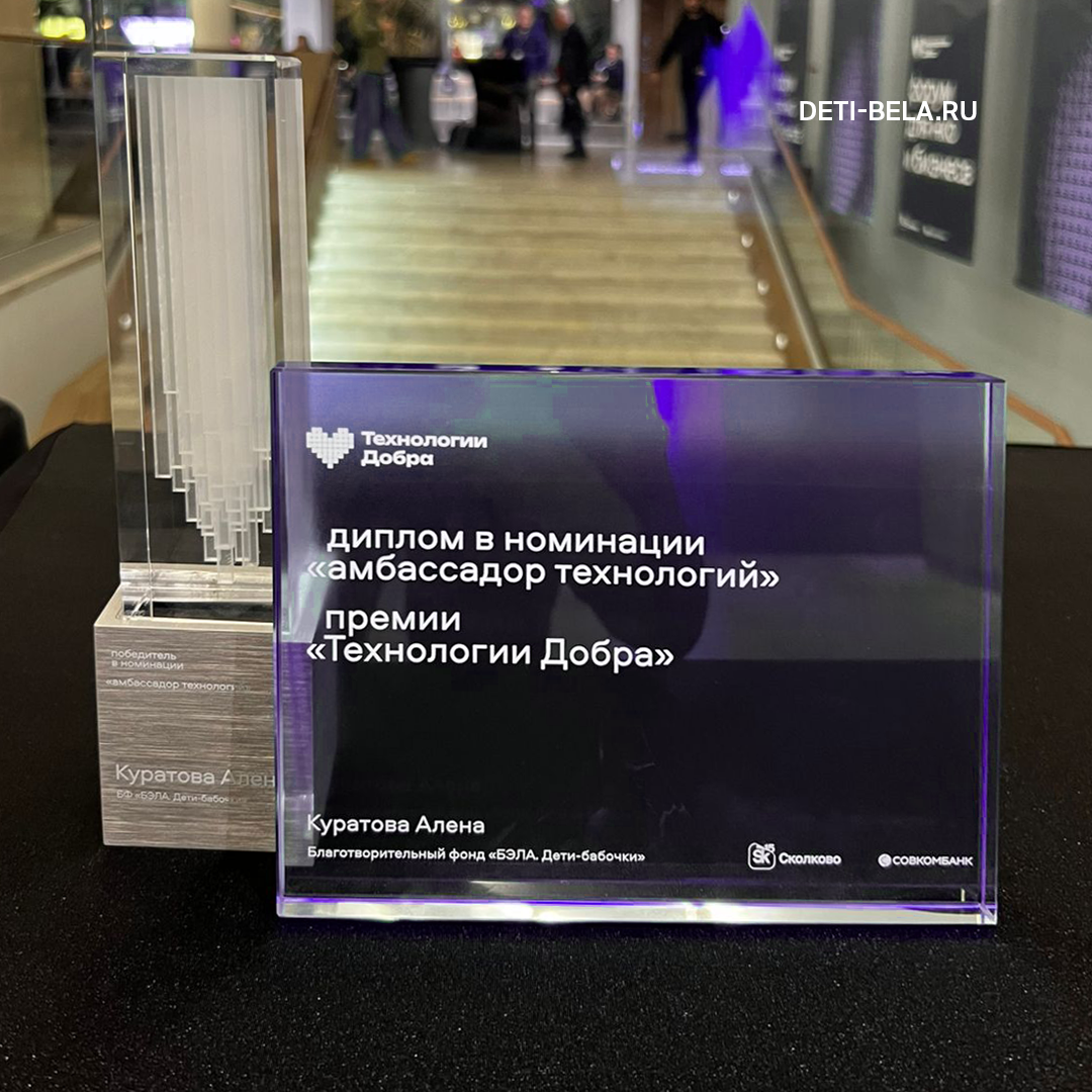 Руководитель и учредитель фонда «Дети-бабочки» Алёна Куратова стала лауреатом конкурса «Лидер качества», а Фонд стал первым победителем премии в области качества среди НКО.
