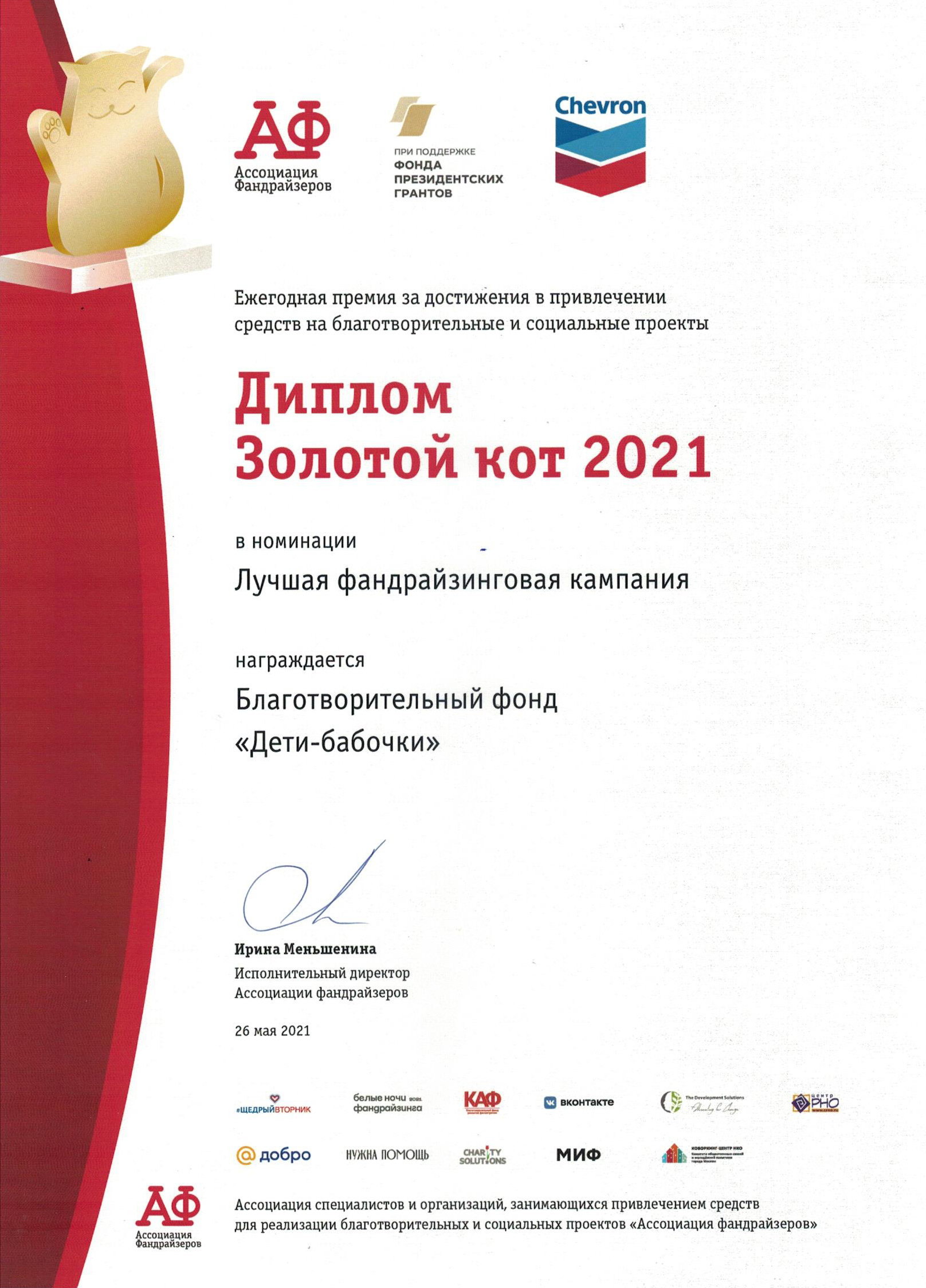 Проект MD Video получил «Золотого кота» - премию за достижения в привлечении средств на благотворительные и социальные проекты.