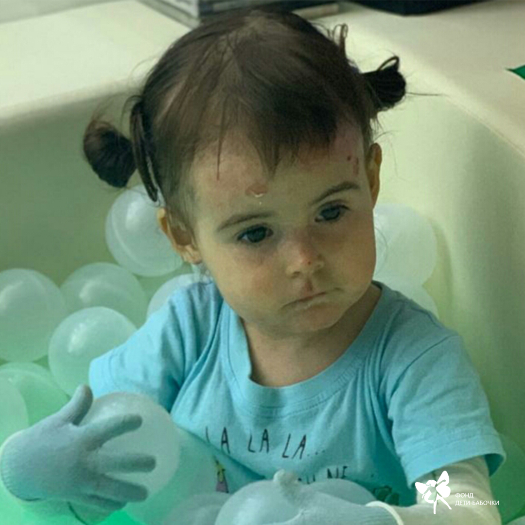 При транспортировке из роддома в отделение без надлежащей защиты, Даша нанесла себе много повреждений ручками и ножками. Позднее в этот же день был поставлен диагноз буллезный эпидермолиз, тяжелое течение.