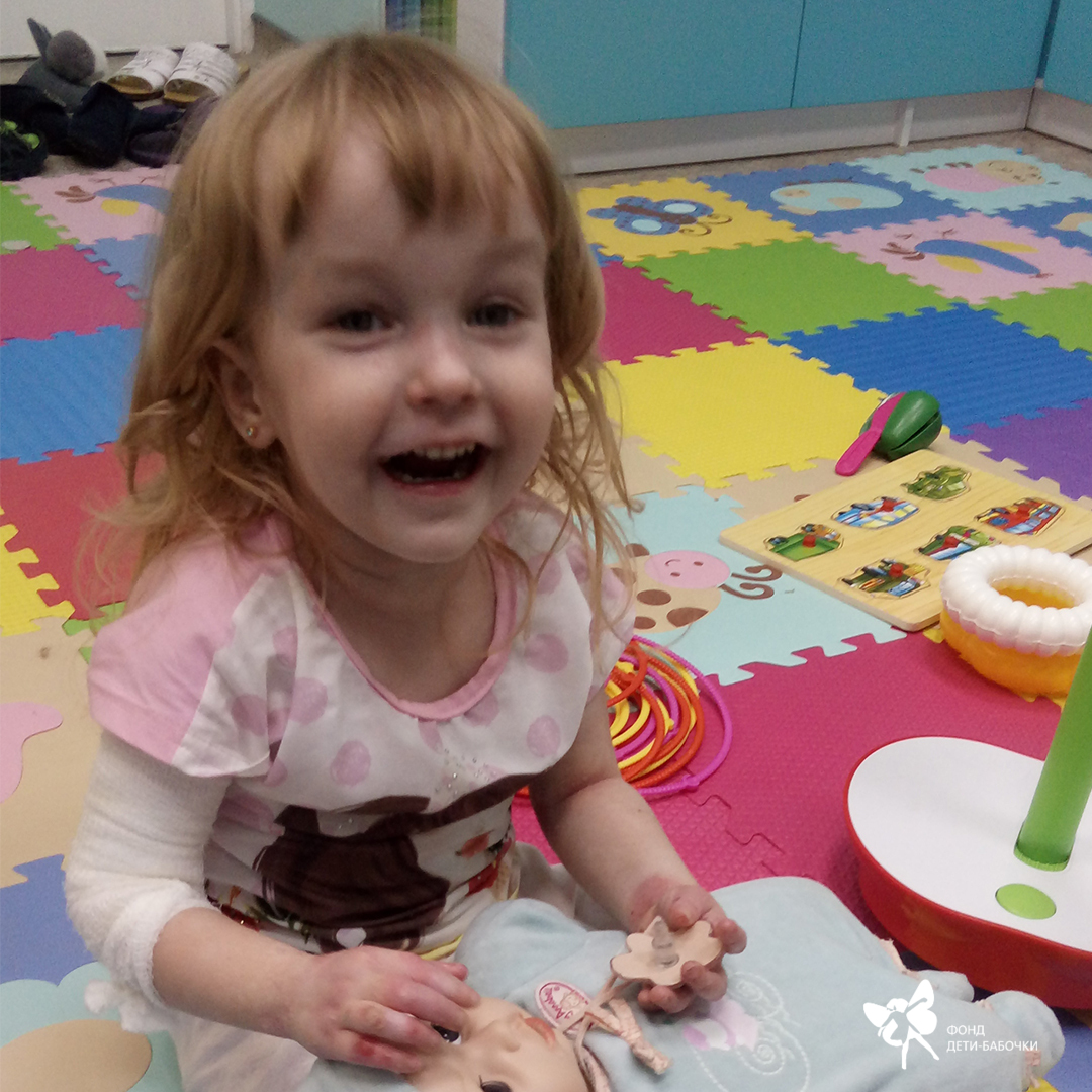 Физическое развитие было по возрасту, начала ползать, но на ладонях и коленях не было кожи, это причиняло страшную боль.